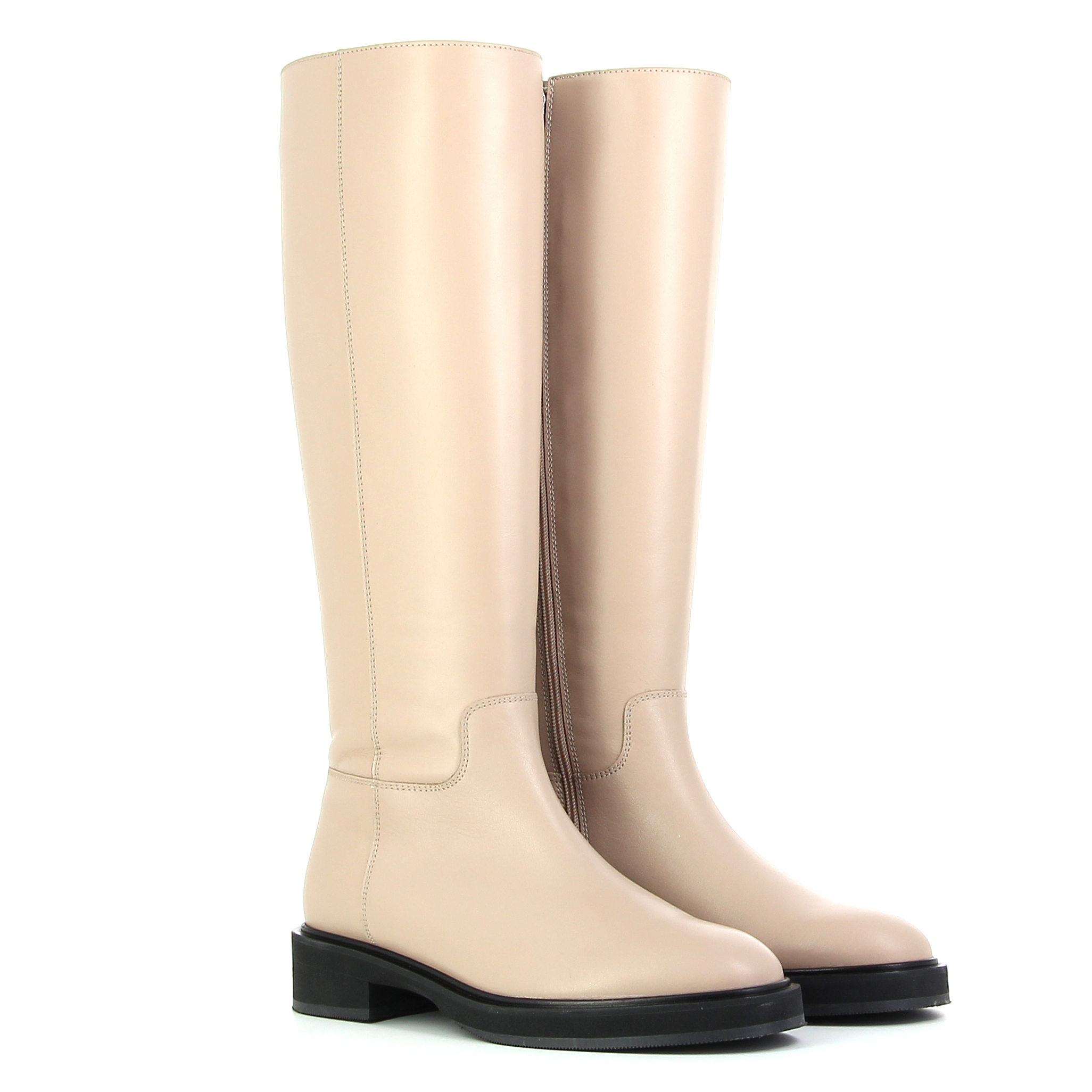 Высокие сапоги на низком ходу – идеальное решение для тех, кто привык быть стильной без ущерба удобству! Сдержанный дизайн позволяет свободно сочетать пару с различными образами, а потому ее можно смело включить в осенний капсульный гардероб.