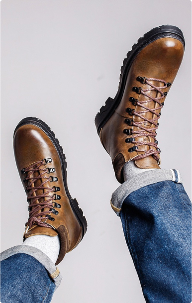 Ее можно отличить по характерным элементам: нескользящая рифленая подошва, толстая кожа с пропиткой или водоотталкивающая мембранная ткань, металлически люверсы, петли и скобы для шнуровки, прочные шнурки. В повседневный гардероб хайкеры вошли благодаря моде на туристический стиль и грубую обувь.